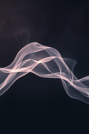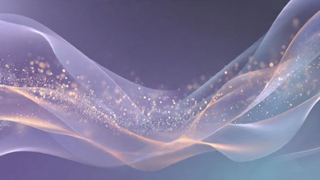 Soft glowing abstract light waves flow over a smooth surface, creating an ethereal effect and a sense of tranquility
