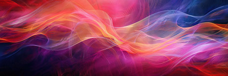 Dynamic, colorful light trails in wavy patterns against a dark gradient background.
