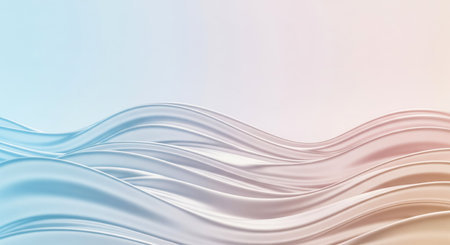 Gentle fluid motion concept with metallic silky shapes. Modern elegant wallpaper for presentation or website, soft flowing lines and pastel color gradient, luxury and technology banner design