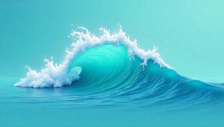 Magnificent turquoise wave curling over the serene ocean water