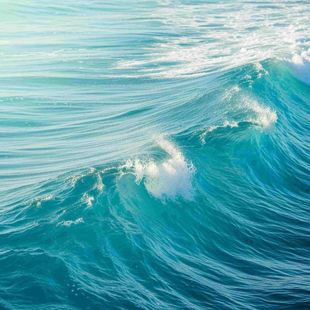 Flowing blue ocean waves create a seamless cinematic pattern from a top view perspective