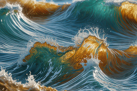 3d render, abstract background with sea waves and golden splashes