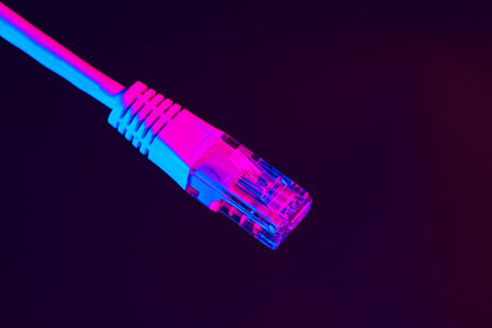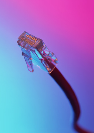 Modern technology network cable in neon light.