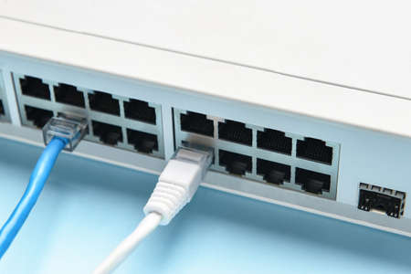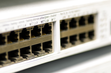 LAN network Ethernet switch. Close-up