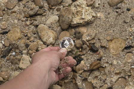 ethereum Cryptocurrency. e-currency. sea. ethereum in hand. sand