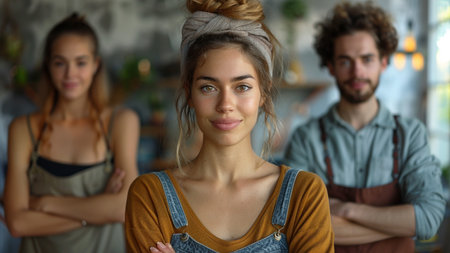 Portrait of a smiling wheelchair user with friends, confident and beautiful, empowering, artistic, inclusivity and friendship.