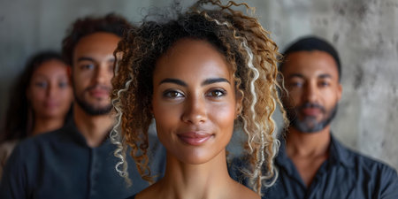 A diverse group of individuals from various cultural backgrounds standing next to each other, A group of individuals from various cultural backgrounds standing together in unity
