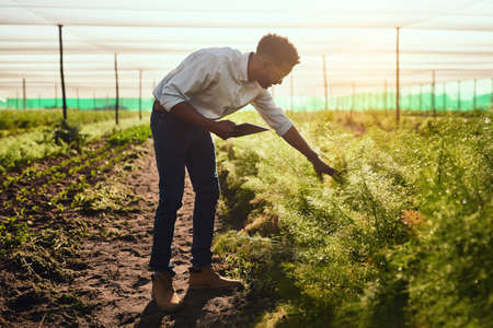 Specialized care. a handsome young man working on his farm.