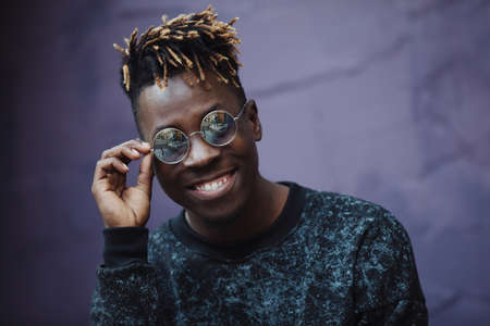 Stylish african american man rapper wear cool glasses
