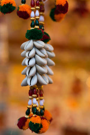 Varanasi India November 10, 2018 View of traditional jewelry, bracelet and necklace sold in the streets of Varanasi in the afternoon