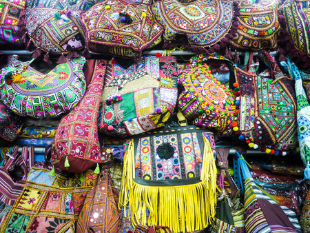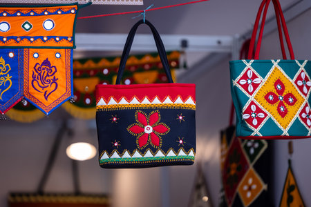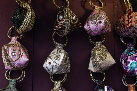 Close-up view of Indian woman hand bag in a shop display for sale