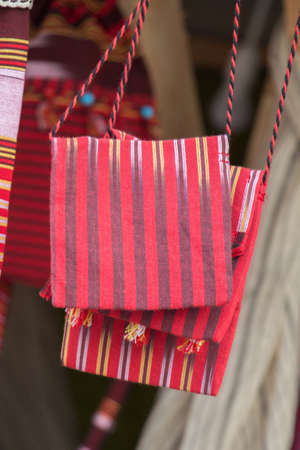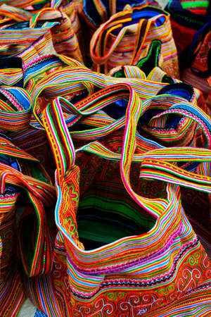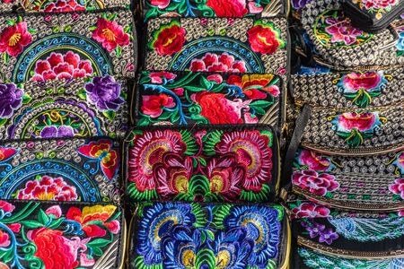 Colorful woven handbags for souvenir in Guangxi Zhuang the Autonomous Region of Longsheng, Guilin, China in the East Asia