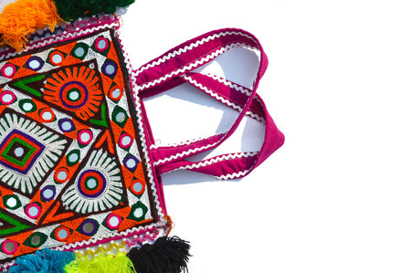 indian old system bag,indian embroidery bag on white background,colorful embroidery bag on isolate white background,fabric material on needlework embroidery,Gujarat/Rajasthan/haryana/panjab/bihar/kashmir bag,artwork for indian,handmade bag,handicrafts colorful bags