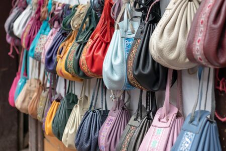 Handbags exposed for sale at traditional market
