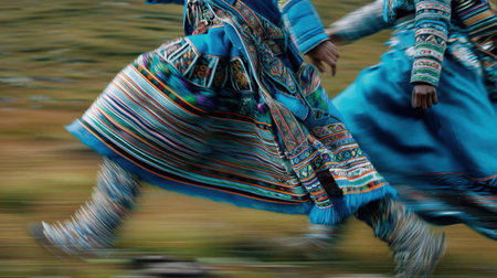 Immerse yourself in the vibrant atmosphere of a traditional cultural parade showcasing intricate costumes and unique footwear. This celebration highlights rich heritage and artistry through detailed patterns and vibrant colors.