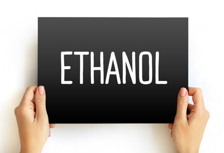 Ethanol - renewable fuel made from various plant materials collectively known as biomass, text concept on card