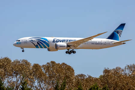 Luqa, Malta - May 19, 2021: EgyptAir Boeing 787-9 Dreamliner (REG: SU-GET) arriving from Cairo.