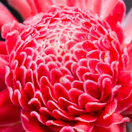 Close up red flower of torch ginger, etlingera elatior family zingiberaceae