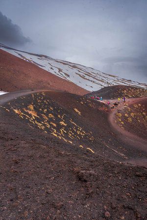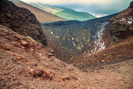 Colorful lava hills and volcanic craters. Mount Etna. Sicily, Italy