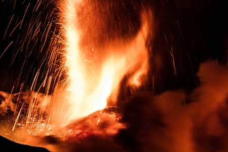 Volcanic eruption in Mount Etna, Sicily, Italy.