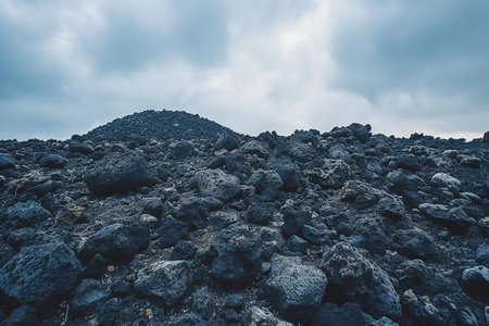 Lava field with newly formed volcanic rock creating a stark landscape at twilight