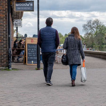 London/UK-1/08/18: people walking along Duke Street in Richmond. Richmond is a suburban town in south-west London on a meander of the River Thames, with a large number of parks and open spaces