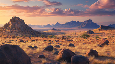 beautiful colorful landscape scenery at the Valley near Garub in Namibia, Africa. a tourist destination that could be a backdrop for wild western movies