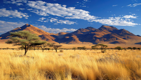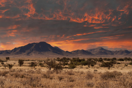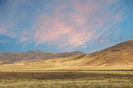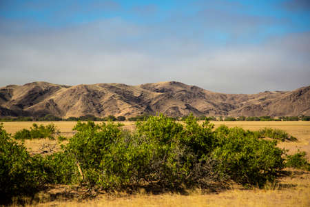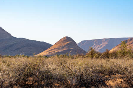 Desert landscapes with mountains in the south of Namibia. The dry season, dry vegetation is a natural background.
