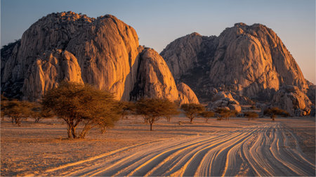 Rock formation in Namib desert in sunset, landscape, Brandberg, Namibia, Africa