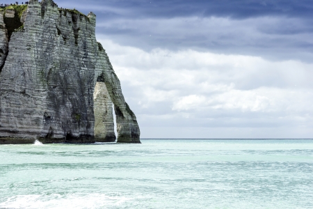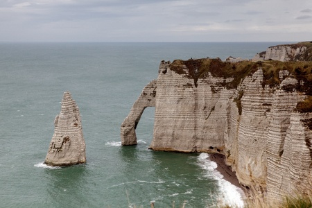 Chalk cliffs of Etretat (Normandy France) with the natural arch called Manneporte