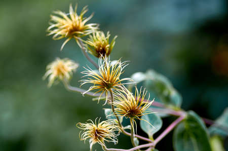 beautiful last autumn blue flowers on a green background in the garden close-up