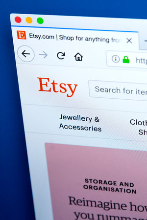 LONDON, UK - JANUARY 10TH 2018: The homepage of the official website for Etsy - the e-commerce website focussed on unique handmade or vintage items, on 10th January 2018.