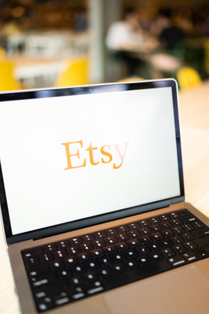 Dhaka, Bangladesh- 02 June 2025: Close-up of a computer screen displaying the Etsy web interface in dark mode