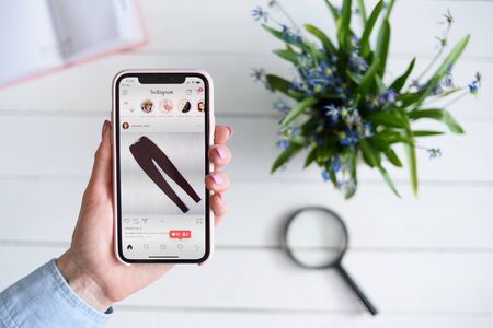 KHARKIV, UKRAINE - April 10, 2019: Woman holds Apple iPhone X with Instagram application on the screen. User page