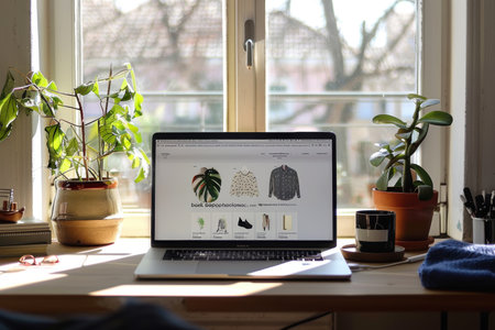 Minimalist Home Office with Laptop Displaying Black Friday Sale on Fashion E-commerce Site