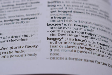 English Definition Dictionary Page Of Printed Word - Bogey Close Up Image