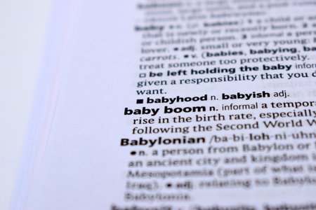 Close Up Of English Dictionary Page With Definition Word - Baby Boom Image