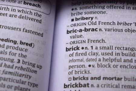 English Definition Dictionary Page Close Up Of Printed Word Of -Brick