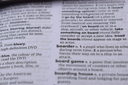 Close Up Of English Dictionary Page With Word - boarder