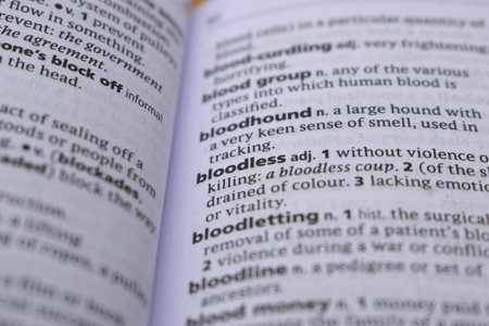 English Dictionary Page Close Up With the Word Of -bloodless