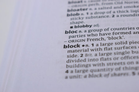 English Dictionary Page Close Up With the Word Of -block