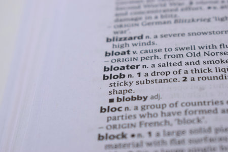 English Definition Dictionary Page Close Up Of Printed Word Of -blob