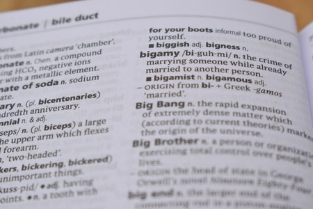 English Dictionary Page Close Up With the Word Of -bigamy