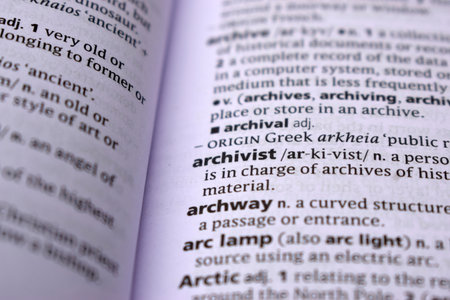 English Dictionary Page Close Up With the Word Of -archivist