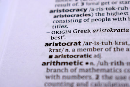 English Definition Dictionary Page Close Up Of Printed Word Of -aristocrat