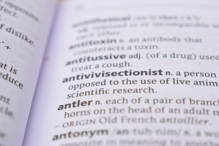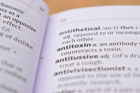 Close Up Of English Dictionary Page With Word - antitoxin