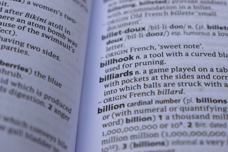 Close Up Of English Dictionary Page With Word - billiards