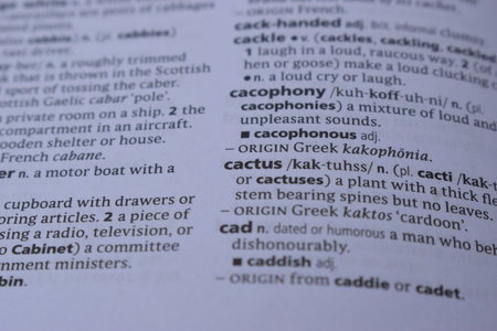 Close Up Of English Definition Dictionary Printed Page Word Of - cactus