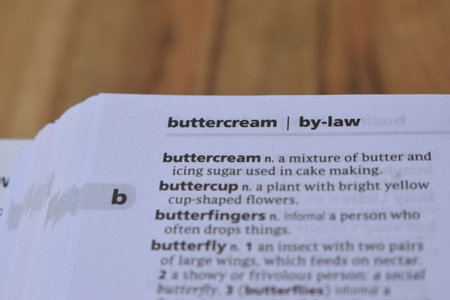 English Dictionary Page Print Close Up With The Word Meaning Of -buttercream