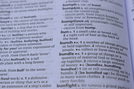 English Definition Dictionary Page Close Up Of Printed Word Of -Bound